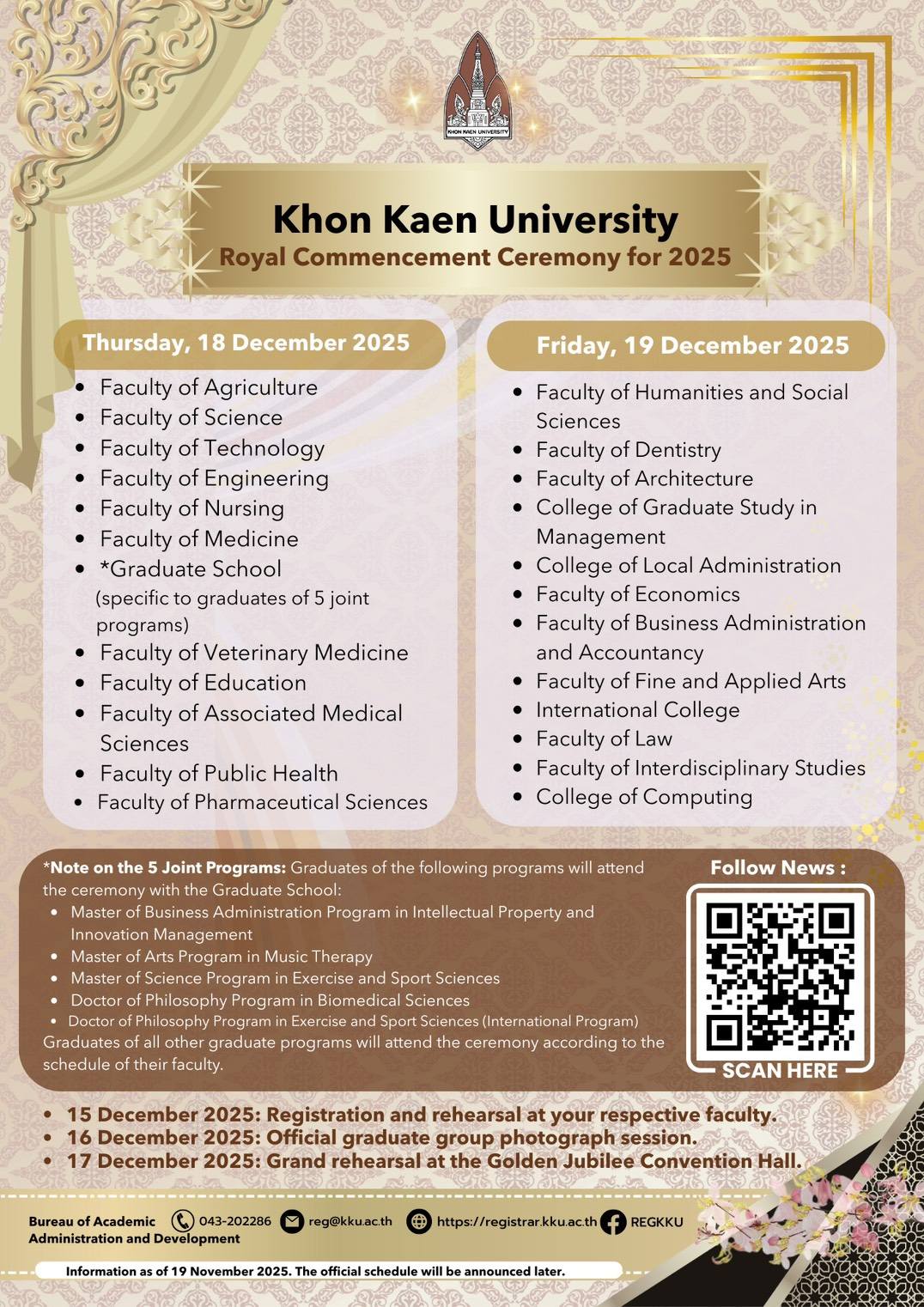 (The 2025 Degree Conferral Ceremony of Khon Kaen University is scheduled on December 18-19, 2025.)