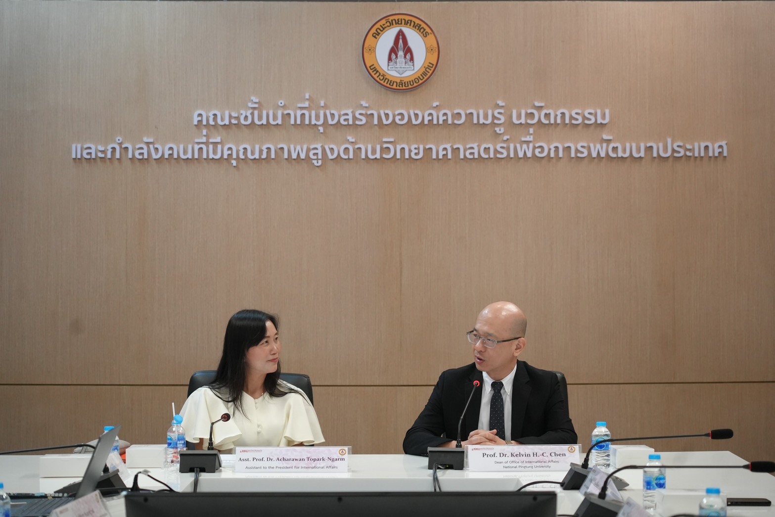 เมื่อวันที่ 5 พฤศจิกายน 2568 มหาวิทยาลัยขอนแก่น นำโดย ผศ.ดร. อัจฉราวรรณ โตภาคงาม ผู้ช่วยอธิการบดีฝ่ายการต่างประเทศ พร้อมด้วย ผศ. ดร.อังคณา บุญยืด คณบดีคณะวิทยาศาสตร์ มหาวิทยาลัยขอนแก่น และผู้แทนจากคณะวิทยาศาสตร์ ให้การต้อนรับคณะผู้แทนจาก National Pingtung University (NPTU) ไต้หวัน นำโดย Professor Dr. Kelvin H.C. Chen, Dean of the Office of International Affairs พร้อมด้วย Prof. Dr. Yao-Sheng Liao, Dean of Department of Commerce Automation & Management และ Assoc. Prof. Jong-Chin Huang, Dean of Office of Student Affairs ในโอกาสเยือนและหารือความร่วมมือทางวิชาการ ณ ห้องวิทยวิภาส 2 ชั้น 2 อาคารวิทยวิภาส คณะวิทยาศาสตร์ มหาวิทยาลัยขอนแก่น