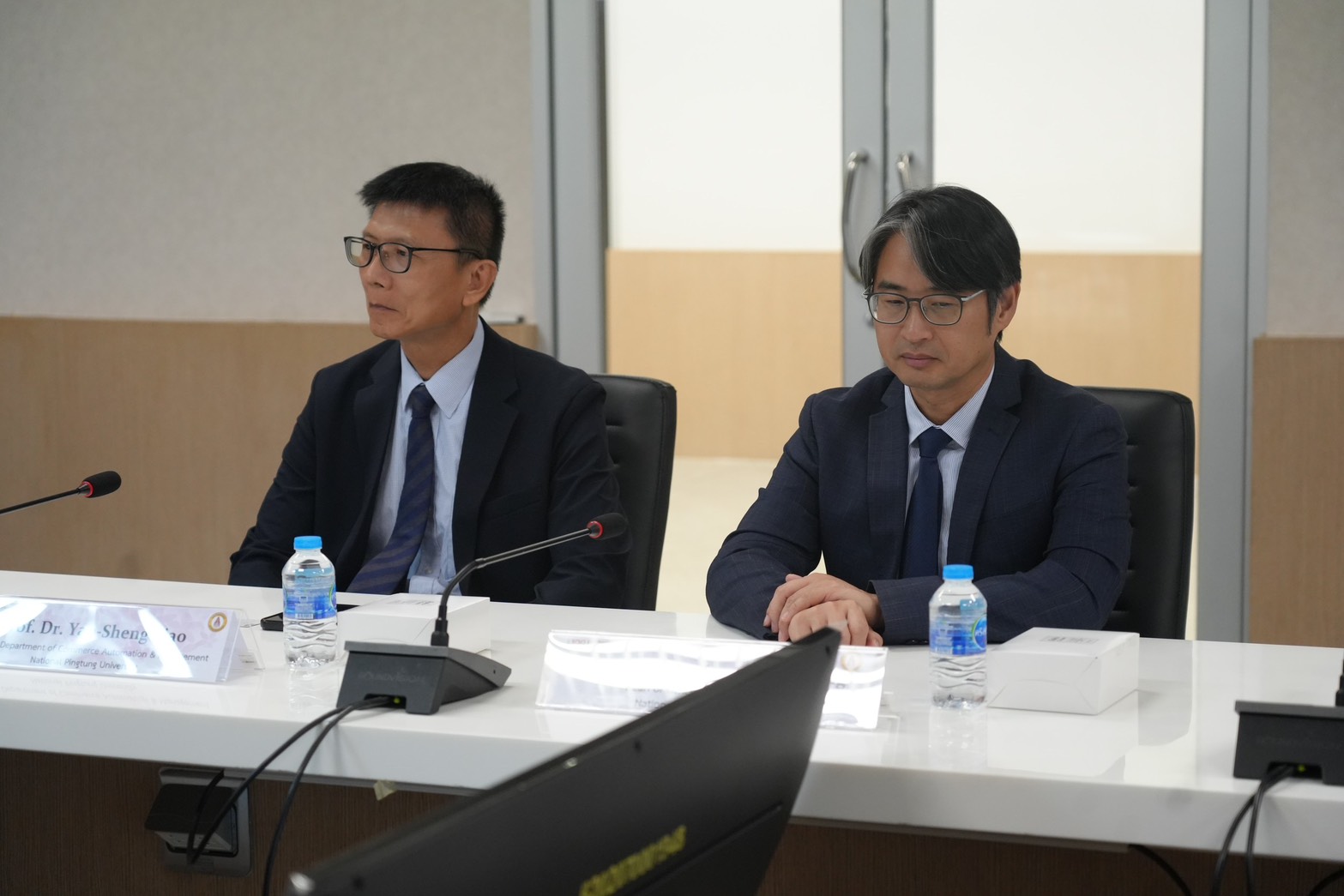 ในช่วงเช้า คณะผู้แทนจาก NPTU ได้เข้าเยี่ยมชมคณะเศรษฐศาสตร์ และได้พบกับ รองศาสตราจารย์ ดร. สุทิน เวียนวิวัฒน์ คณบดีคณะเศรษฐศาสตร์ พร้อมด้วยทีมผู้บริหาร เพื่อหารือถึงแนวทางการพัฒนาความร่วมมือระหว่างกัน พร้อมเยี่ยมชมคณะฯ อย่างละเอียด จากนั้น คณะผู้แทน NPTU ได้เดินทางไปยังคณะแพทยศาสตร์ โดยได้รับการต้อนรับจาก ผศ.พญ.สุภวรรณ เลาหศิริวงศ์ ผู้ช่วยคณบดีฝ่ายวิเทศสัมพันธ์และการสื่อสารองค์กร โดยมีตัวแทนจากภาควิชา นำเสนอภาพรวมของหลักสูตร และพาชมสถานที่และห้องปฏิบัติการต่างๆ ของภาควิชา ทั้งสองมหาวิทยาลัยได้เริ่มต้นความร่วมมือกันตั้งแต่ปี 2566 ผ่านความร่วมมือใน 3 คณะหลัก ได้แก่ คณะวิทยาศาสตร์ คณะเศรษฐศาสตร์ และคณะแพทยศาสตร์ ในรูปแบบของการแลกเปลี่ยนนักศึกษาและบุคลากร การฝึกงาน และความร่วมมือด้านสหกิจศึกษา โดยทั้งสองฝ่ายได้แสดงเจตนารมณ์ในการพัฒนาความสัมพันธ์อันแน่นแฟ้นนี้ให้ก้าวหน้ายิ่งขึ้น ผ่านการขยายความร่วมมือด้านการวิจัย โครงการแลกเปลี่ยนนักศึกษา และการส่งเสริมหลักสูตรปริญญาร่วม (Dual Degree)