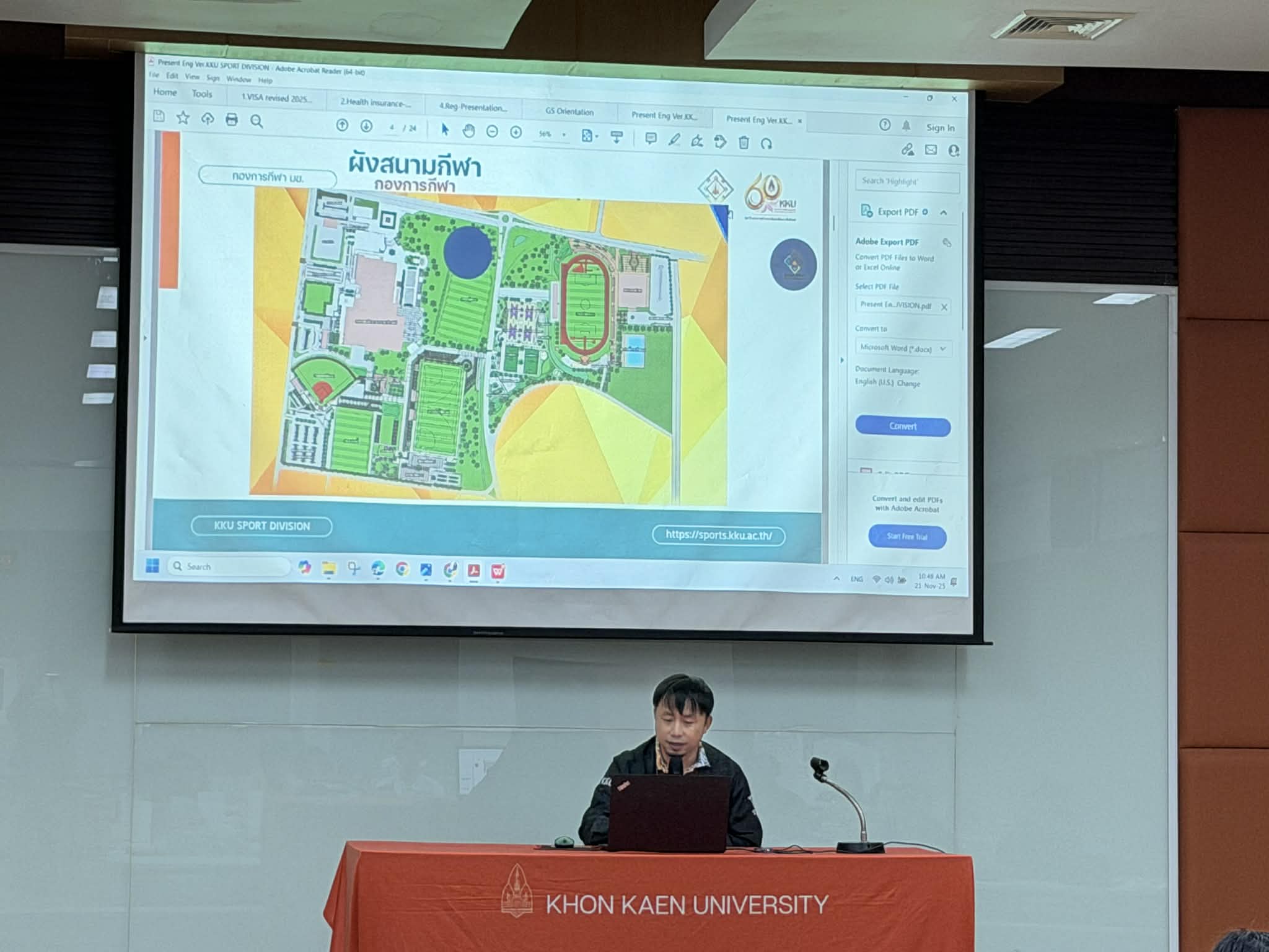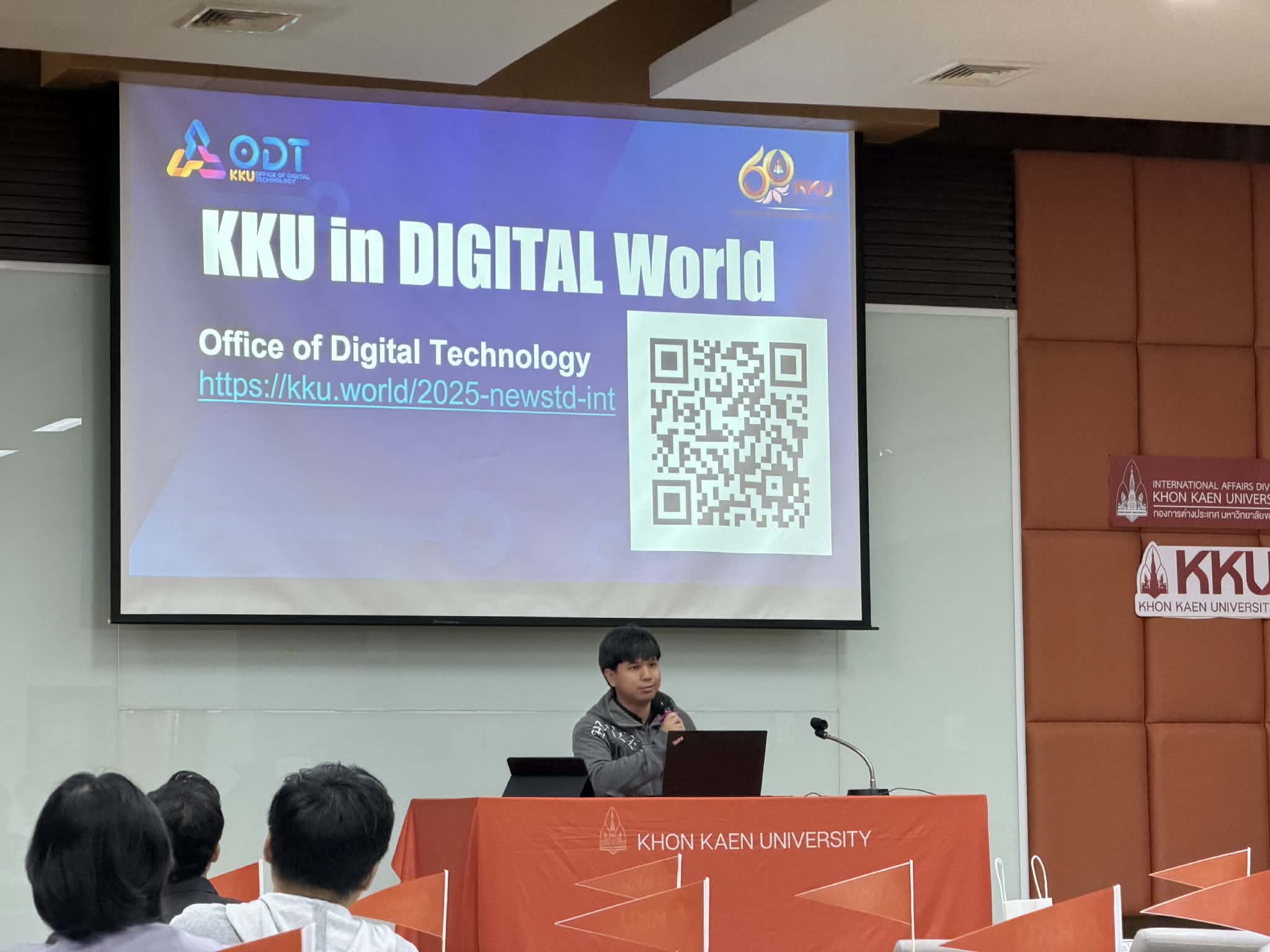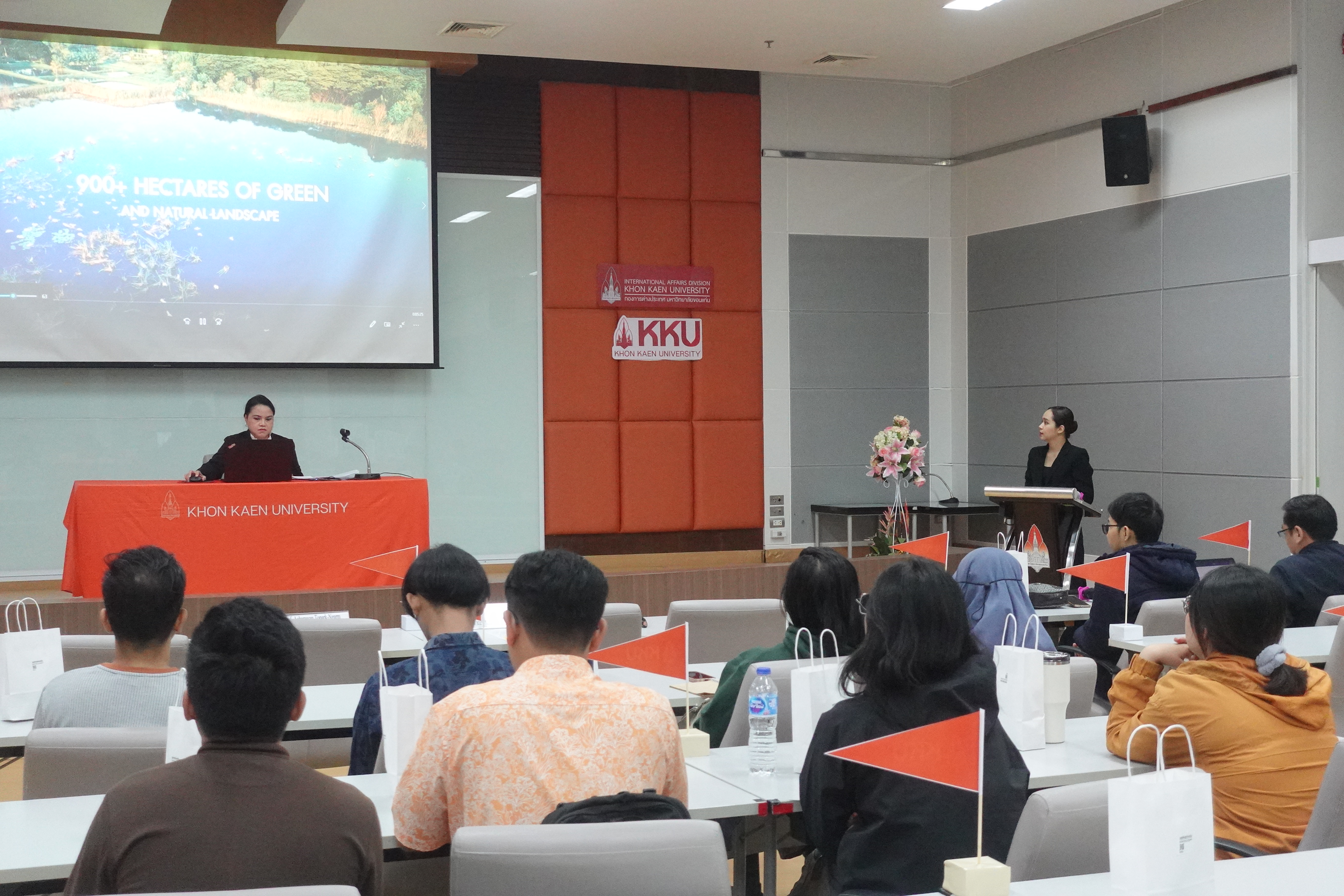 เมื่อวันที่ 21 พฤศจิกายน 2568 กองการต่างประเทศ มหาวิทยาลัยขอนแก่น จัดกิจกรรมปฐมนิเทศนักศึกษาต่างชาติ ภาคปลาย ปีการศึกษา 2568 ณ ห้องประชุมสิริคุณากร 3 ชั้น 2 อาคารสิริคุณากร ในงานนี้ ได้รับเกียรติจาก รองศาสตราจารย์ ดร.นวรัตน์ วราอัศวปติ รองอธิการบดีฝ่ายการต่างประเทศ และ ผู้ช่วยศาสตราจารย์ ดร.อัจฉราวรรณ โตภาคงาม ผู้ช่วยอธิการบดีฝ่ายการต่างประเทศ กล่าวต้อนรับนักศึกษาต่างชาติ ซึ่งกิจกรรมมีวัตถุประสงค์เพื่อเปิดโอกาสให้นักศึกษาชาวต่างประเทศในมหาวิทยาลัยขอนแก่น ได้มีโอกาสแลกเปลี่ยนเรียนรู้และพบปะร่วมกับนักศึกษาจากชาติต่างๆ อีกทั้ง มีการแนะนำข้อมูลเกี่ยวกับการบริการจากหน่วยงานต่างๆ ได้แก่ กองการต่างประเทศ บัณฑิตวิทยาลัย สำนักบริหารและพัฒนาวิชาการ สำนักเทคโนโลยีดิจิตัล สำนักหอสมุด และกองการกีฬา นอกจากนี้ ในช่วงท้ายยังมีกิจกรรม International student talk and share เพื่อแชร์ประสบการณ์การใช้ชีวิตของนักศึกษาต่างชาติ ในมหาวิทยาลัยขอนแก่น โดยมีผู้แทนชมรมนักศึกษาต่างชาติเข้าร่วมแลกเปลี่ยนกิจกรรมดังกล่าว