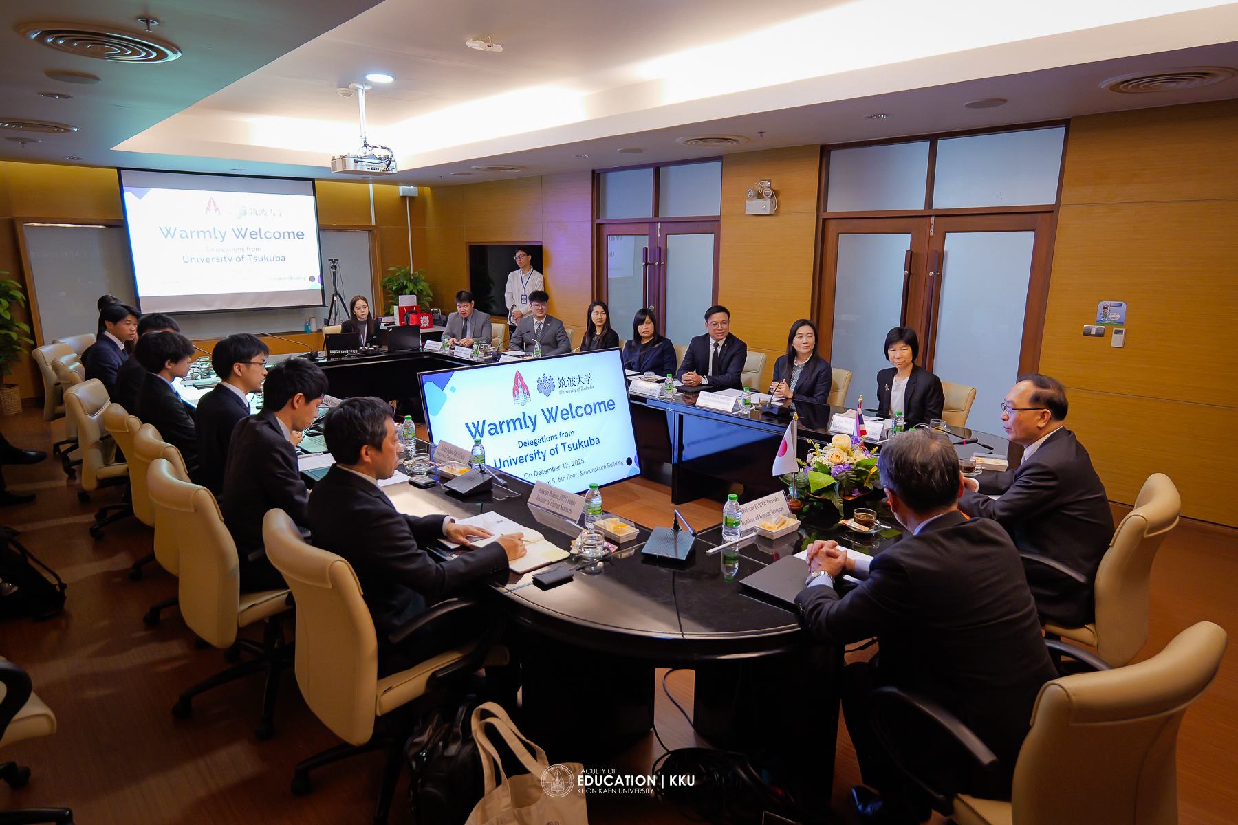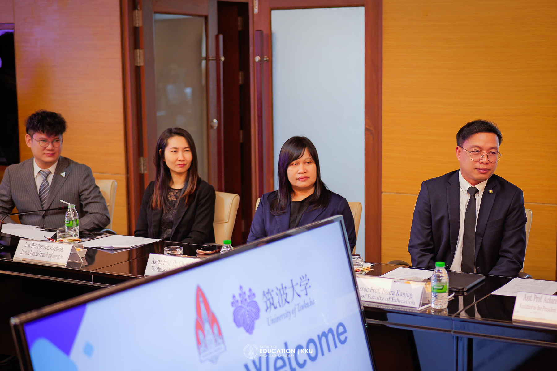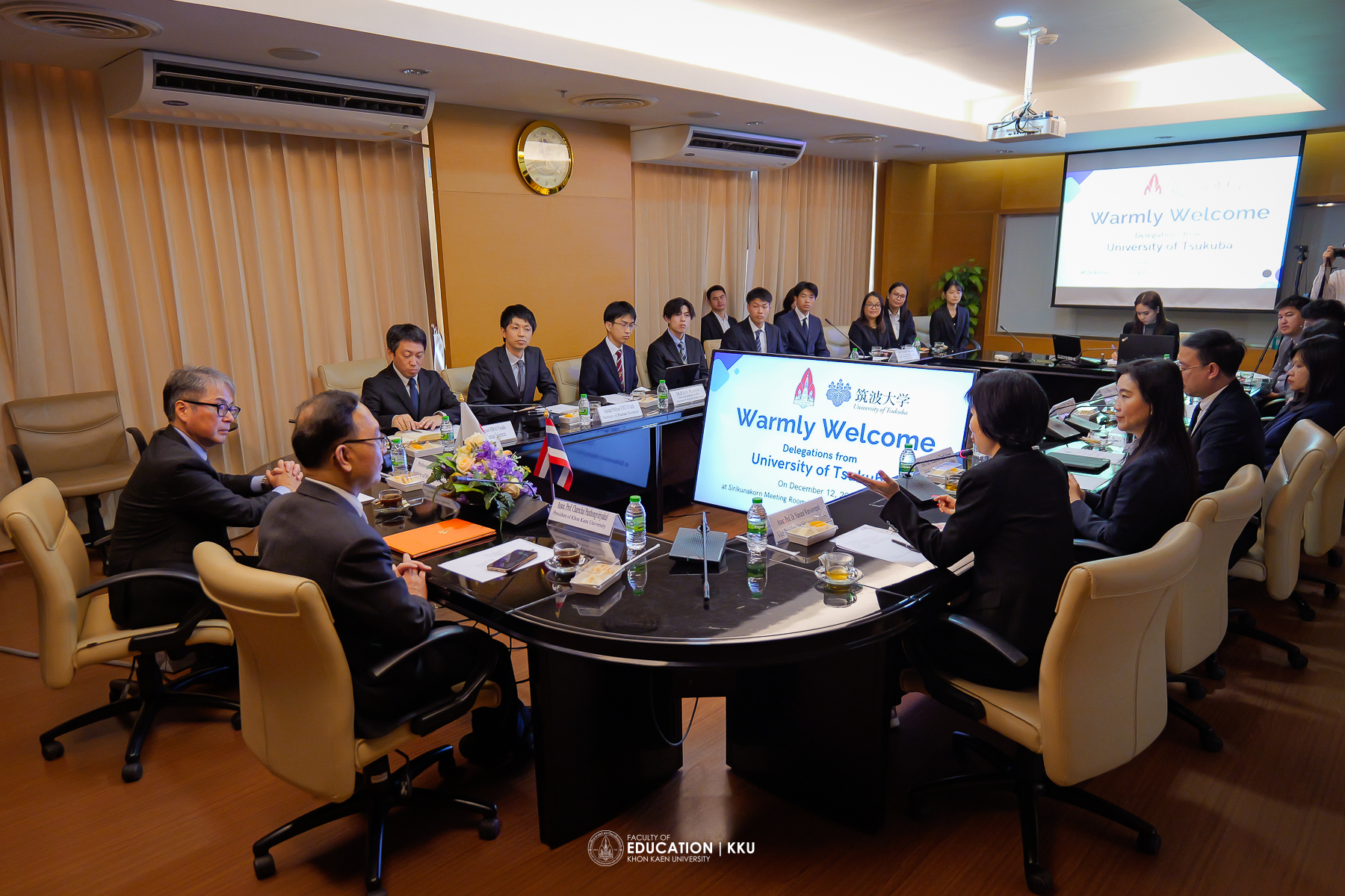 เมื่อวันที่ 11 ธันวาคม พ.ศ. 2568 มหาวิทยาลัยขอนแก่น นำโดย รองศาสตราจารย์นายแพทย์ชาญชัย พานทองวิริยะกุล อธิการบดีมหาวิทยาลัยขอนแก่น พร้อมด้วย รองศาสตราจารย์ ดร.นวรัตน์ วราอัศวปติ รองอธิการบดีฝ่ายการต่างประเทศ และ ผู้ช่วยศาสตราจารย์ ดร.อัจฉราวรรณ โตภาคงาม ผู้ช่วยอธิการบดีฝ่ายการต่างประเทศ รวมถึงผู้บริหารจากคณะศึกษาศาสตร์ นำโดย รองศาสตราจารย์ ดร.อิศรา ก้านจักร คณบดีคณะศึกษาศาสตร์ ให้การต้อนรับ คณะผู้บริหาร คณาจารย์ และนักศึกษาจาก University of Tsukuba ประเทศญี่ปุ่น นำโดย Professor Fujita Teruyuki จาก Institute of Human Sciences พร้อมคณะฯ ในโอกาสเดินทางมาเยือนมหาวิทยาลัยขอนแก่น