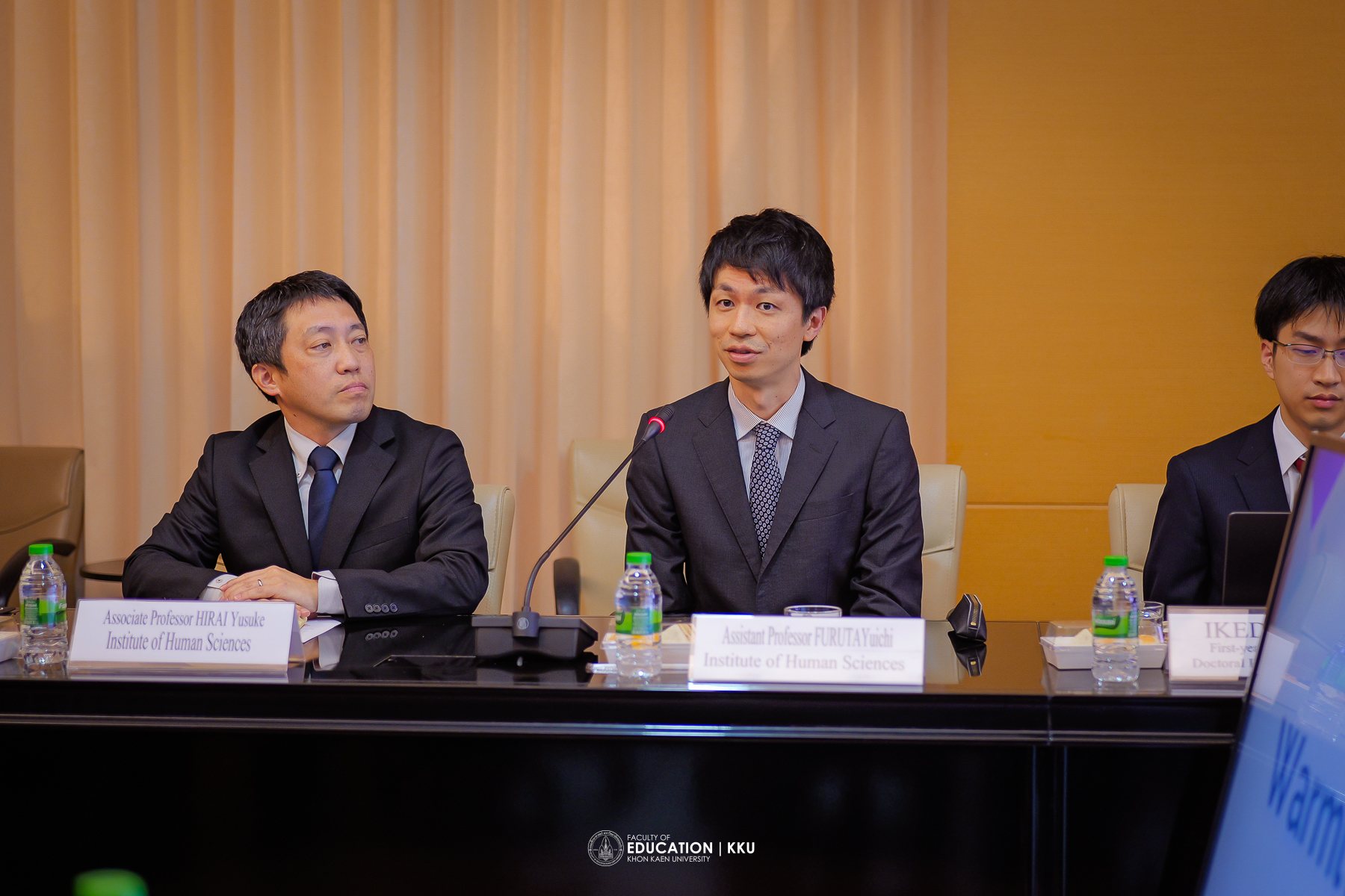 ทั้งนี้ Professor Fujita Teruyuki, Associate Professor Hirai Yusuke และ Assistant Professor Furuta Yuichi จาก Institute of Human Sciences พร้อมด้วยคณาจารย์จากคณะศึกษาศาสตร์ มหาวิทยาลัยขอนแก่น ได้ร่วมนำเสนอความก้าวหน้าของการดำเนินโครงการ CAMPUS-Asia 6 การจัดกิจกรรมแลกเปลี่ยนนักศึกษาในช่วงปีการศึกษา 2568–2569 ตลอดจนแนวทางการพัฒนาความร่วมมือด้านการเรียนการสอน การวิจัย และโครงการปริญญาร่วม (Double Degree Program) ในอนาคต