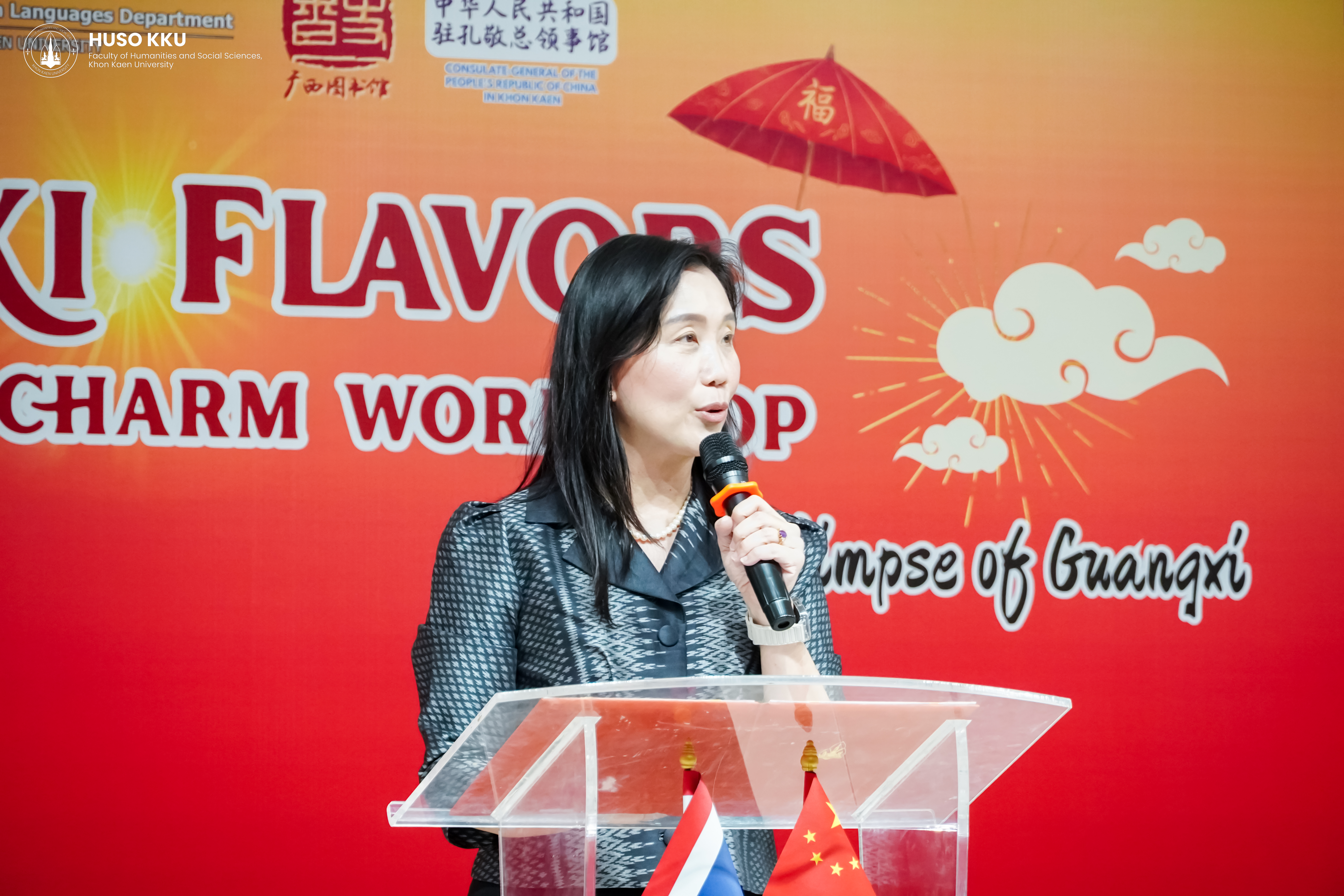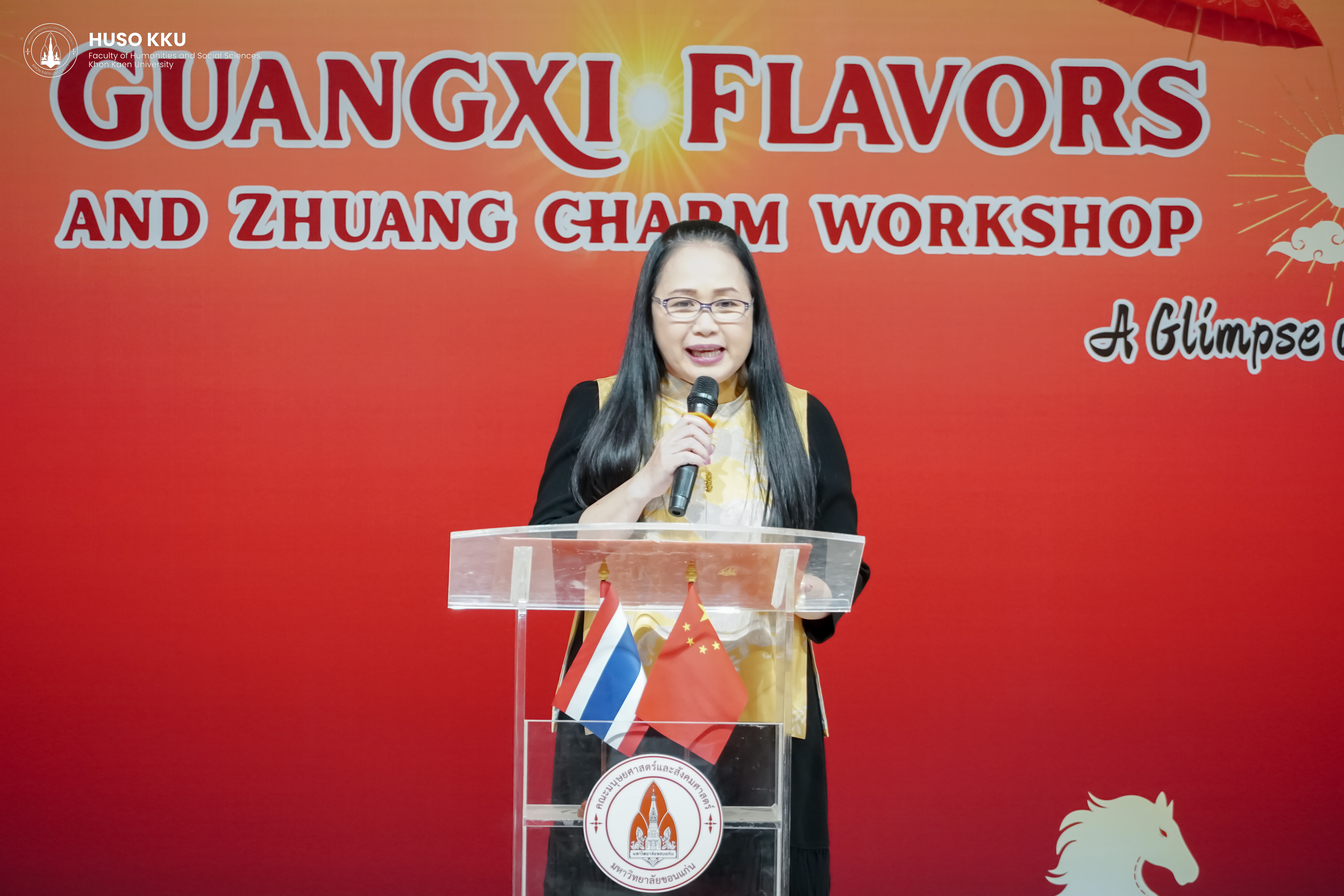 กิจกรรมครั้งนี้เป็นความร่วมมือระหว่างกงสุลใหญ่แห่งสาธารณรัฐประชาชนจีน ณ จังหวัดขอนแก่น มหาวิทยาลัยขอนแก่น คณะมนุษยศาสตร์และสังคมศาสตร์ มหาวิทยาลัยขอนแก่น และ Library of Guangxi Zhuang Autonomous Region สาธารณรัฐประชาชนจีน ภายในงานได้รับเกียรติจาก ผศ.ดร.อัจฉราวรรณ โตภาคงาม ผู้ช่วยอธิการบดีฝ่ายการต่างประเทศ กล่าวเปิดกิจกรรม พร้อมด้วย รศ.ดร.อรทัย เพียยุระ คณบดีคณะมนุษยศาสตร์และสังคมศาสตร์ กล่าวต้อนรับ และ Ms. Qin Xiaoyan, Director, Library of Guangxi Zhuang Autonomous Region กล่าวถึงวัตถุประสงค์การจัดงาน บรรยากาศภายในงานเป็นไปอย่างคึกคัก สนุกสนาน และเปี่ยมด้วยสาระความรู้ นักศึกษาได้เปิดประสบการณ์เรียนรู้วัฒนธรรมกว่างซีและชนชาติจ้วงผ่านกิจกรรมทั้ง 6 ฐาน ได้แก่