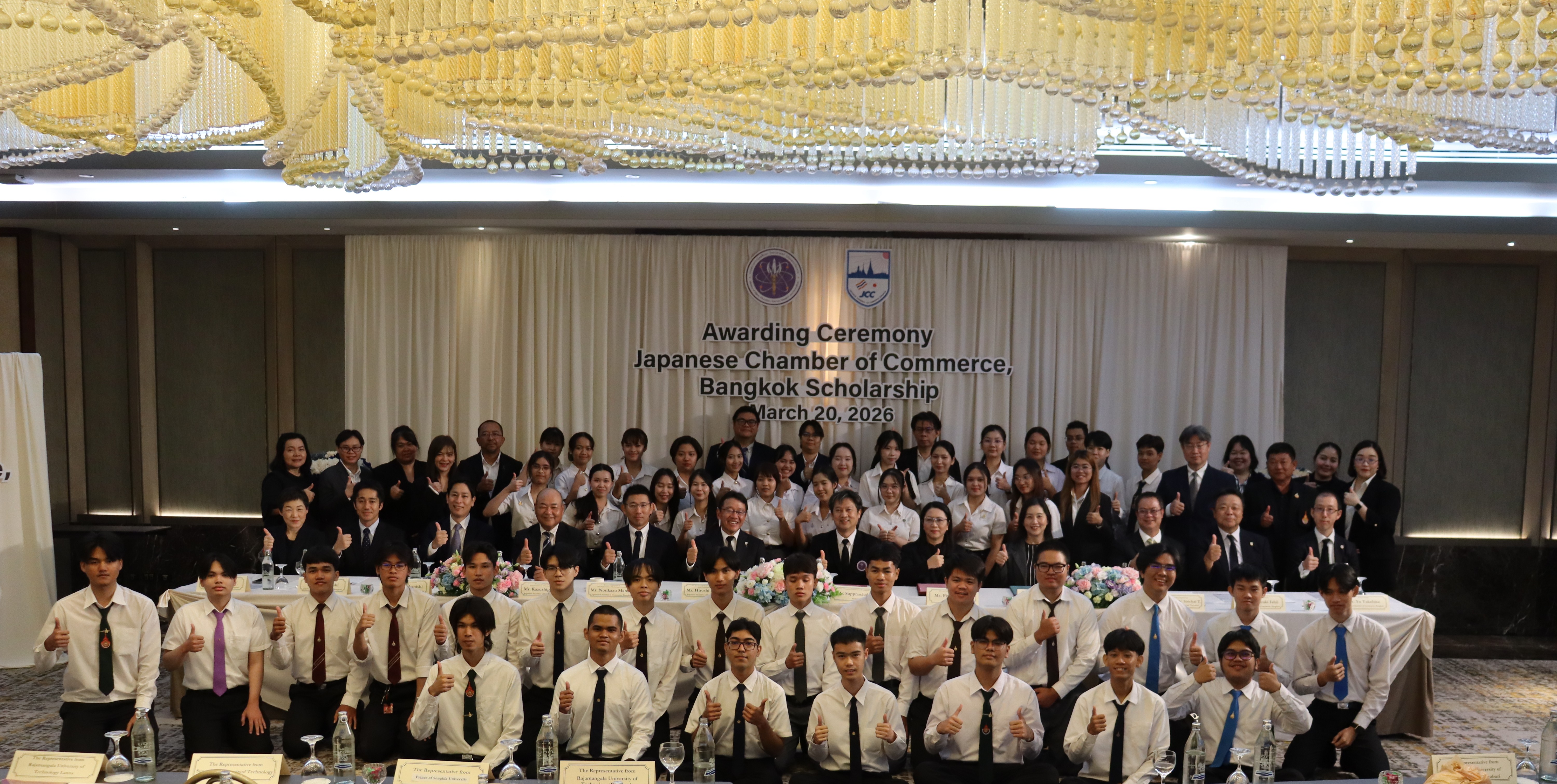 BANGKOK (March 20, 2026) – Selected students from Khon Kaen University (KKU) attended the Japanese Chamber of Commerce (JCC) - Bangkok Scholarship (Regional) Awarding Ceremony for the 2025 Academic Year at the Rembrandt Hotel Ballroom, Bangkok. Representing the university was Asst. Prof. Acharawan Topark-Ngarm, Ph.D., Assistant President for International Affairs, also delivered a thank-you speech on behalf of the regional participating universities.